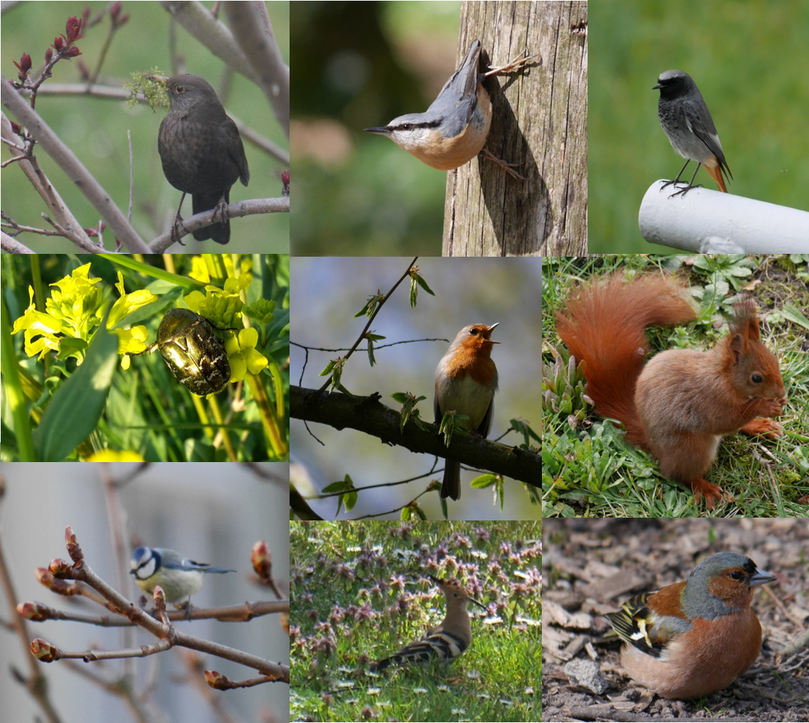 Les animaux ne sont pas en reste. Il y en a beaucoup, pour peu qu’on ouvre ses yeux et ses oreilles. De notre balcon, en ville, nous avons dénombré plus de 30 espèces d'oiseaux : pie, merle, corneille, mésanges bleue et charbonnière, rouge-gorge, pinson des arbres, mais aussi pic vert, serin cini, chardonneret élégant, voire des raretés comme le martinet à ventre blanc et la huppe fasciée.